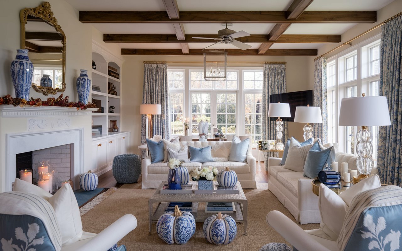 Curtains can completely transform a room. Replace your summer linens with blue-and-white patterned drapes to instantly elevate your space. Choose geometric, floral, or abstract patterns to complement existing decor.