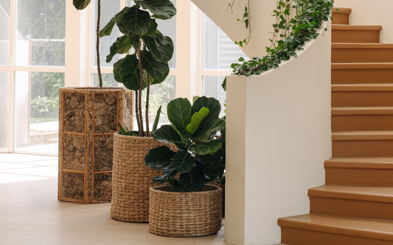 Place tall plants at the base or let trailing plants follow the railing upward.