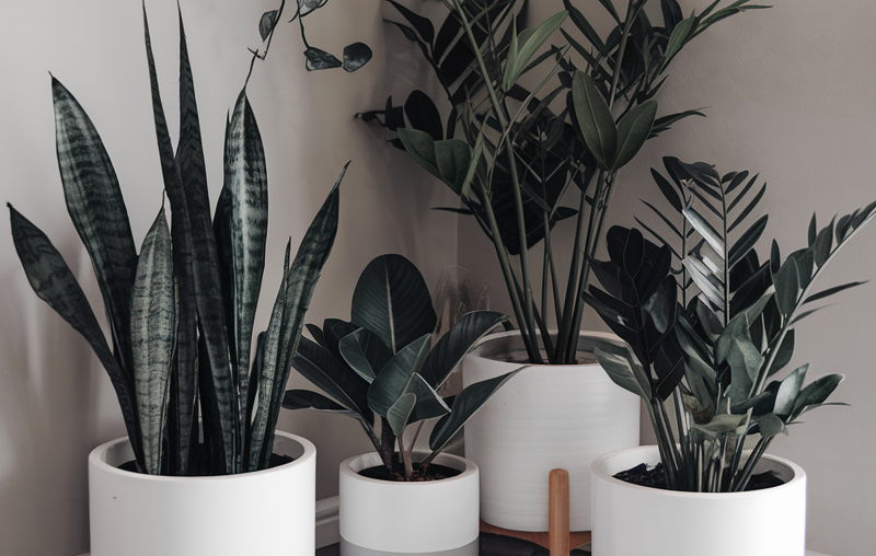 Always group in odd numbers — three or five works beautifully. Mix heights. Pair a tall snake plant with two smaller leafy friends.