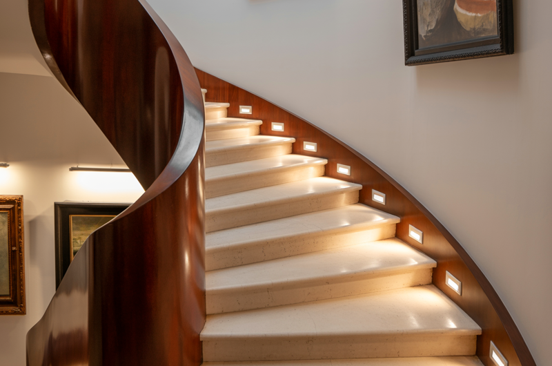 Luxury staircases use light to shape mood. Calm. Drama. Warmth.