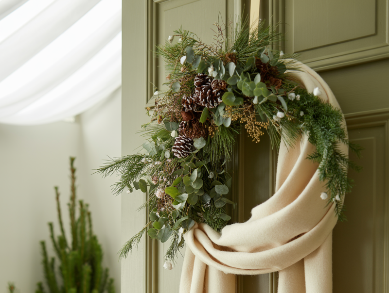 You can leave it completely bare, or add just a few subtle accents. Maybe tiny white berries. Or a thin ribbon. Nothing heavy.