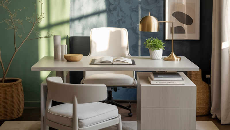Remember the first idea about choosing a desk? Match your palette to it. It ties everything together beautifully.